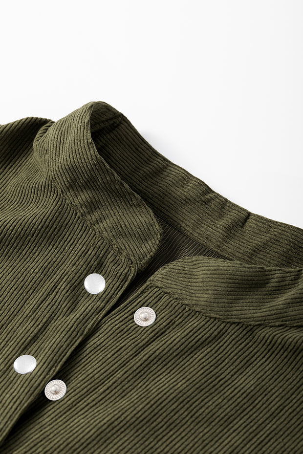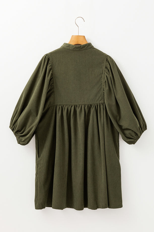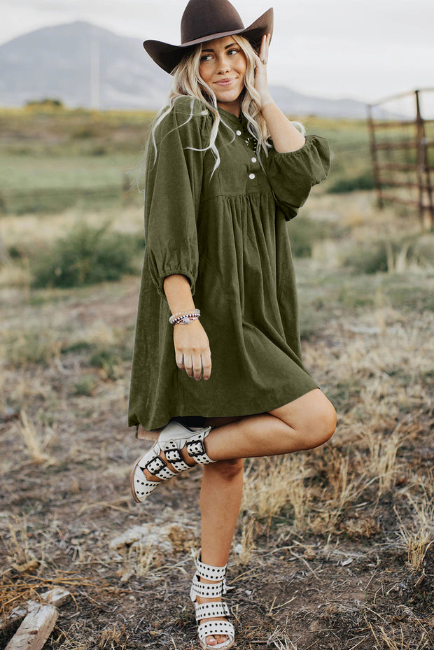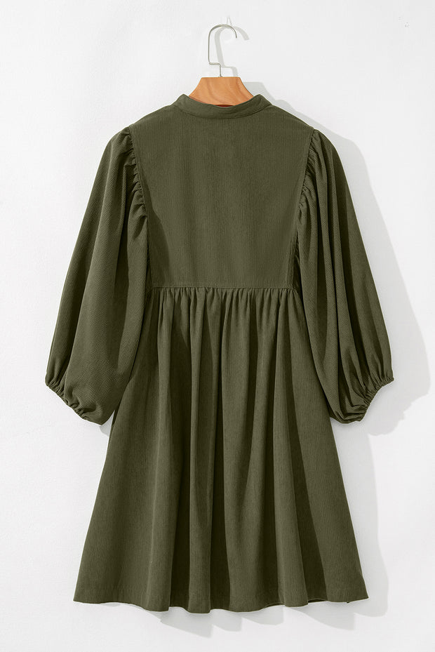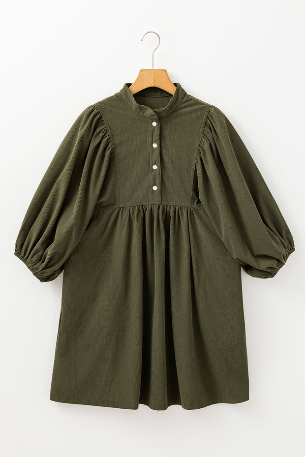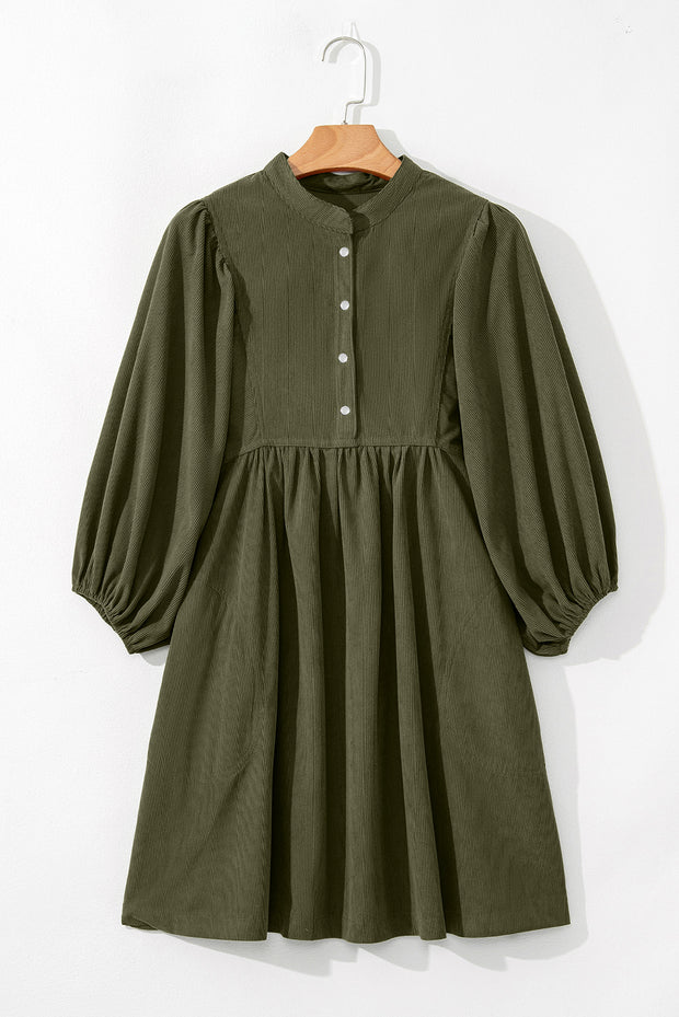 Vineyard Green Corduroy Snap Buttons Empire Waist Bracelet Sleeve Dress