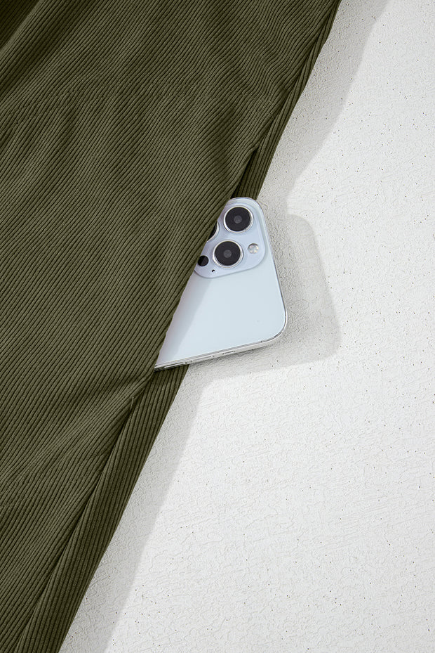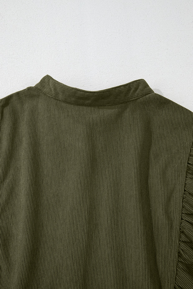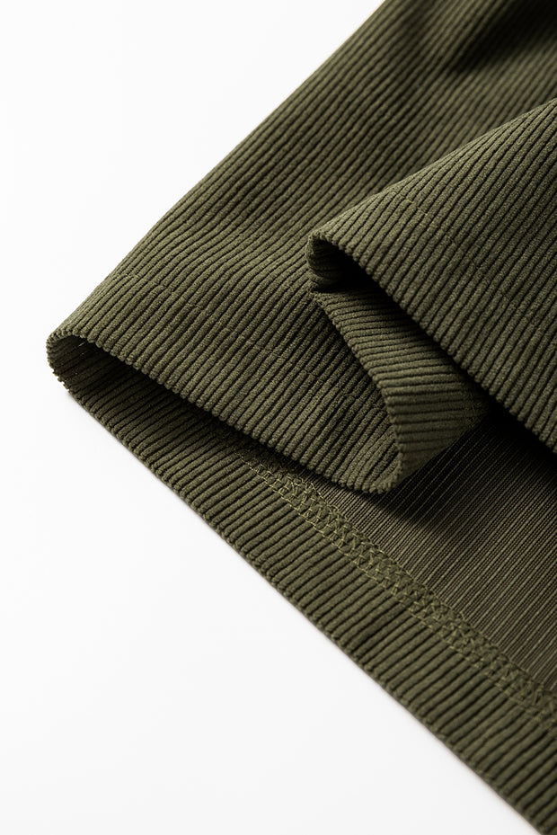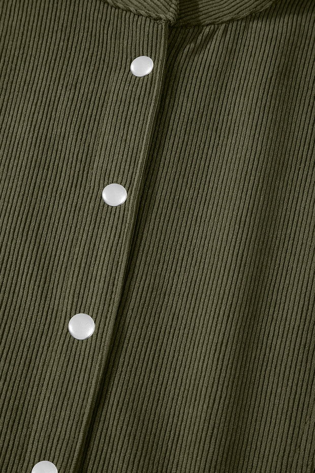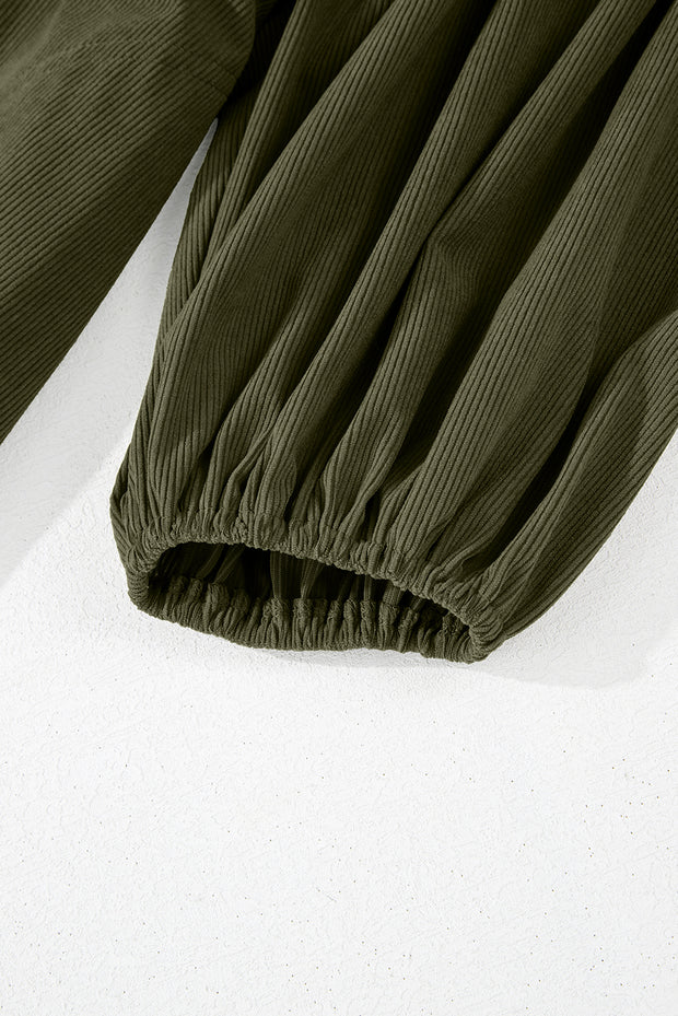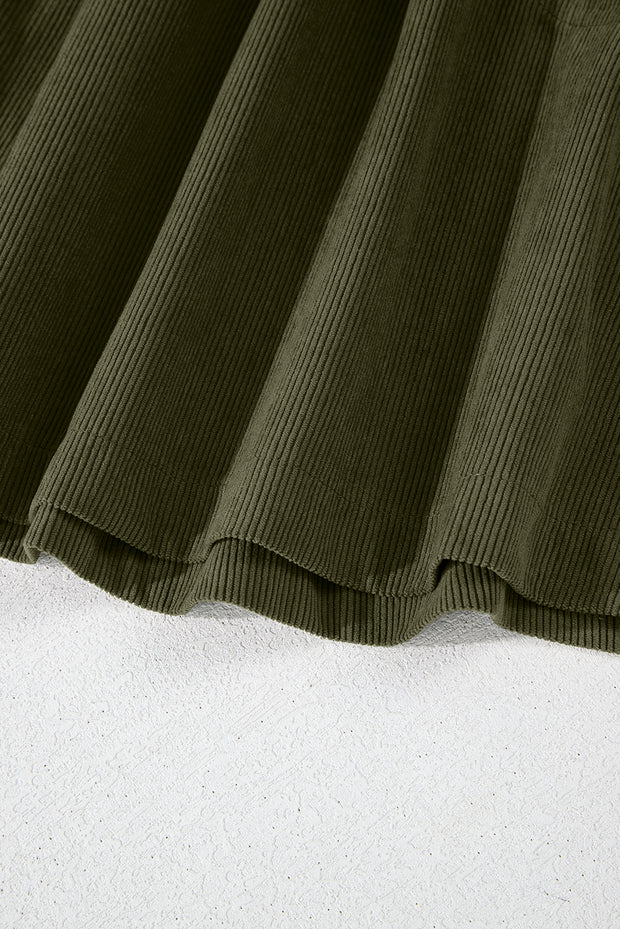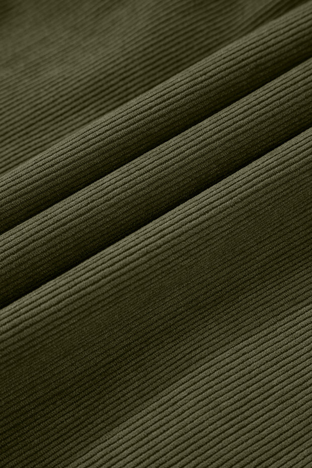 Vineyard Green Corduroy Snap Buttons Empire Waist Bracelet Sleeve Dress