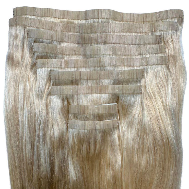 Tenga en cuenta que nuestras extensiones de clip sin costuras incorporan una base de silicona que no reacciona al teñido. Por lo tanto, conservarán su color original incluso después del teñido.