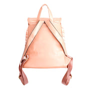 Women's Backpack Handbag Crocodile Texture Pink Vegan Faux Leather Backpack Featuring Drawstring Closure with Flap and Twist Lock. Front Zipper Pocket. Includes Matching Wristlet with 2 Zipper Pockets measuring 5.25" x 7.75". Adjustable Canvas Shoulder Straps and Top Handle.