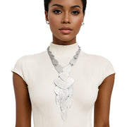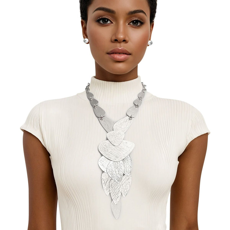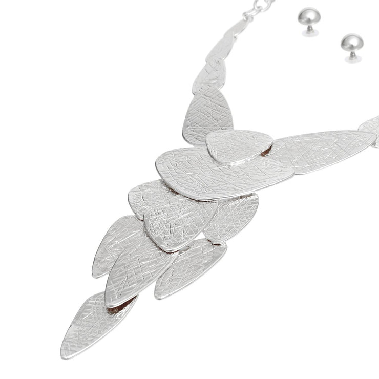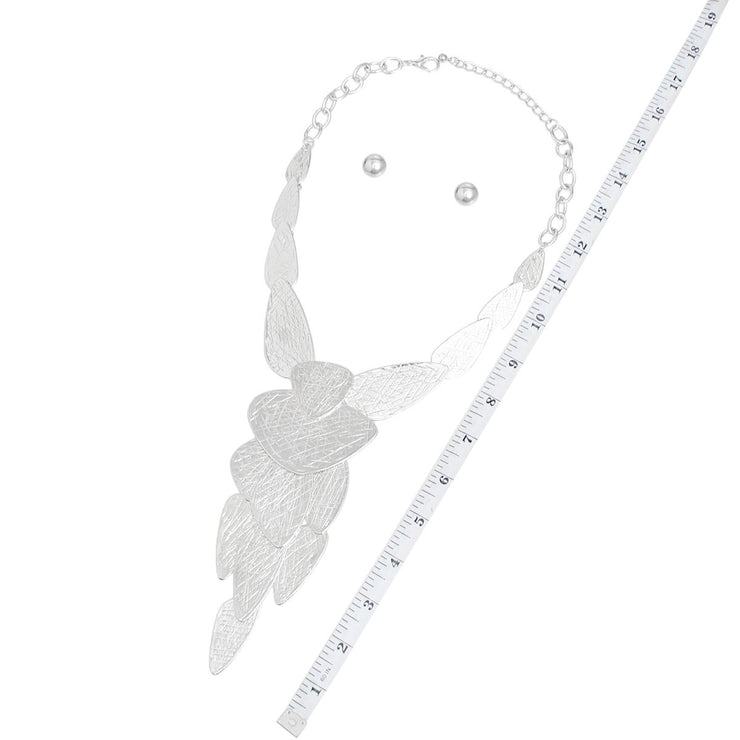 Bib Silver Scratched Metal Plate Edgy Necklace Set