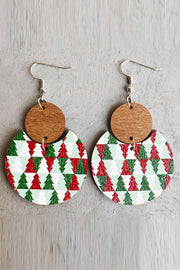Dark Green Christmas Checker Graphic Wooden Earrings