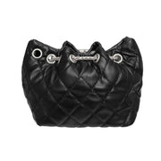Mini Bucket Black Quilted Silver Camellia Luxe Bag