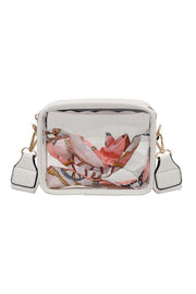 The Clear PVC Leather Strap Crossbody Bag is made of high-quality clear PVC material that is durable and waterproof